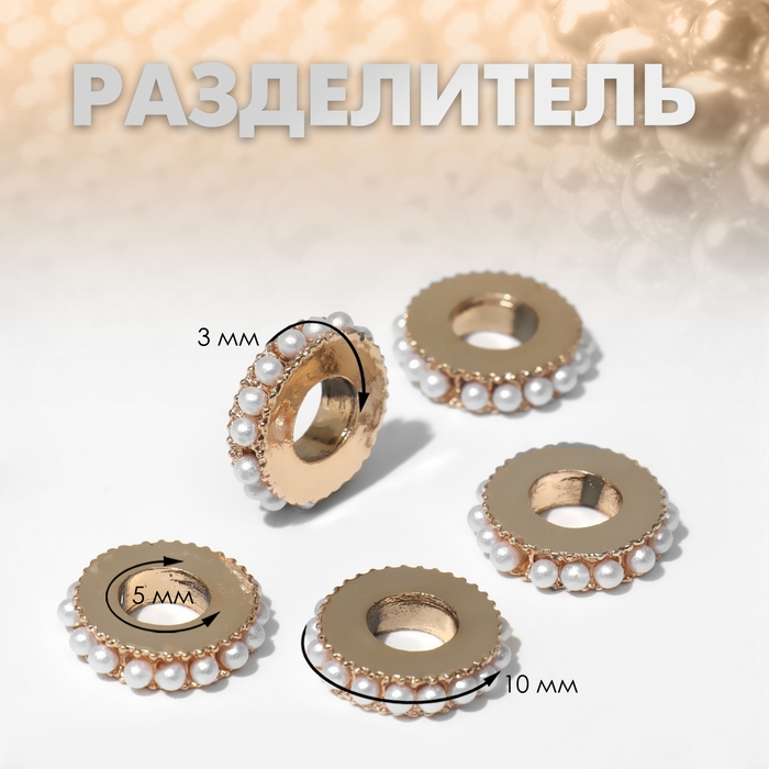 Разделитель «Бусинки» жемчуг, цвет белый в золоте