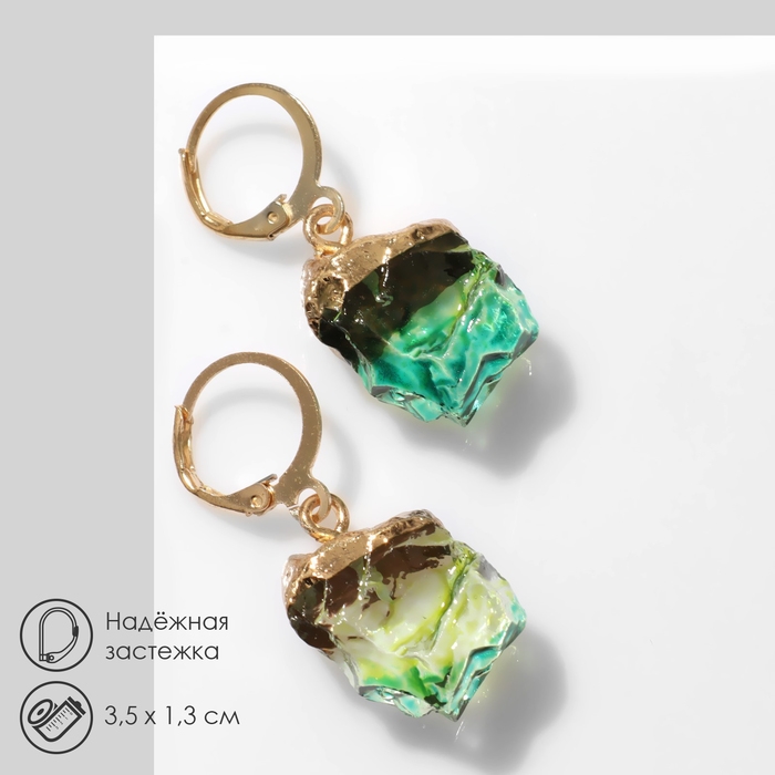 Серьги «Камни» градиент, цвет сине-зелёный в золоте