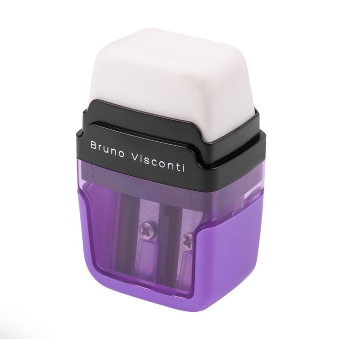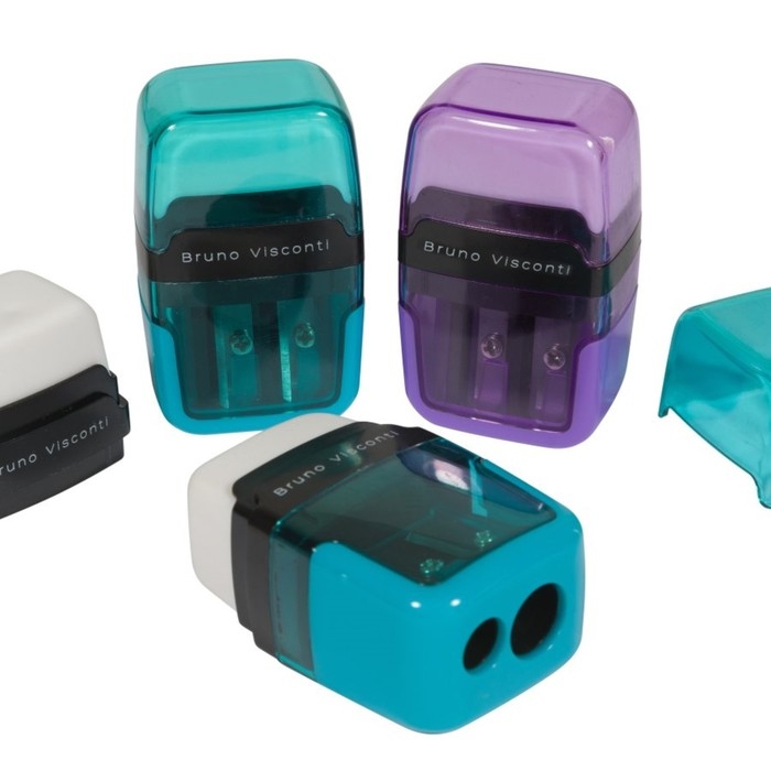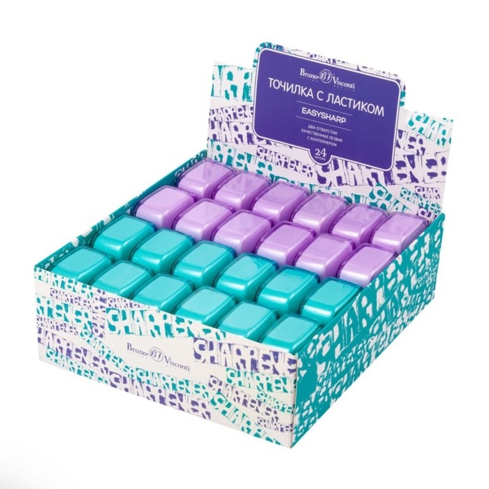 Точилка 2 отверстия с контейнером EASYSHARP, с ластиком, МИКС