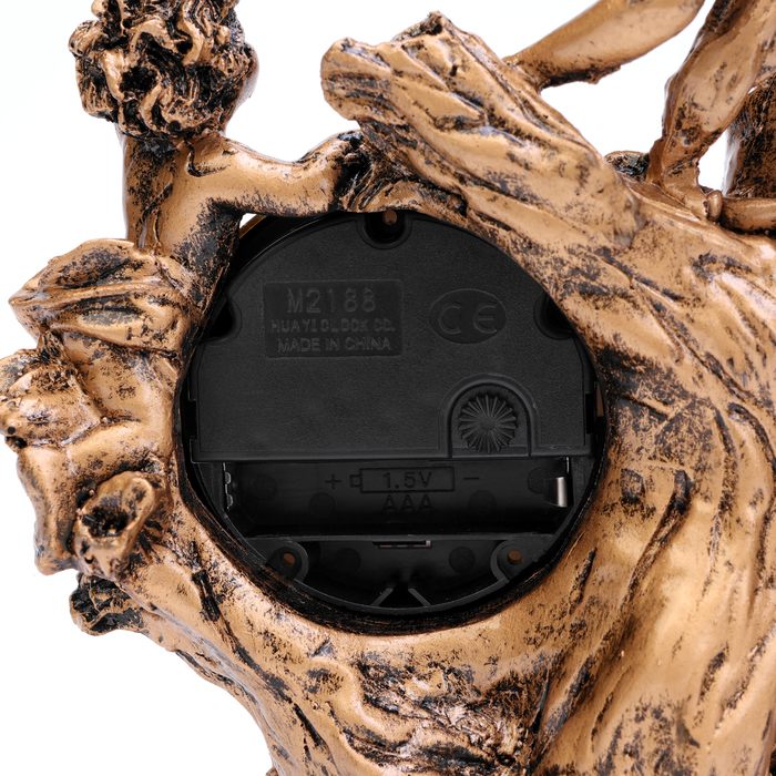 Часы настольные представлены в оригинальном дизайне, они отлично впишутся в интерьер в стиле рококо, барокко, классический. Интерьерные часы станут прекрасным декором для дома и дачи, их можно поставить как на прикроватную тумбочку в спальне, детской комнате, гостиной так и на стол или на комод в зале, холле или на кухне. Часы настольные имеют кварцевый механизм, который гарантирует высокую точность хода. Часы на не требуют частой замены батареек (тип АА), благодаря экономичному механизму. Чтобы поменять батарейку, аккуратно подденьте любым острым предметом циферблат, откройте его, внутри должна быть ячейка для батарейки.