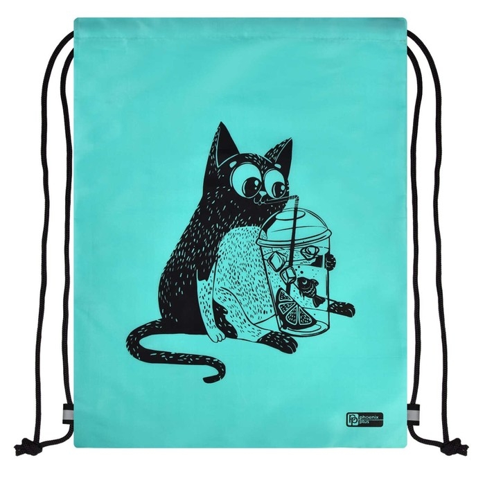 Мешок для обуви 420 х 340 мм, шелкография, Феникс "Кот с лимонадом" бирюзовый 62501