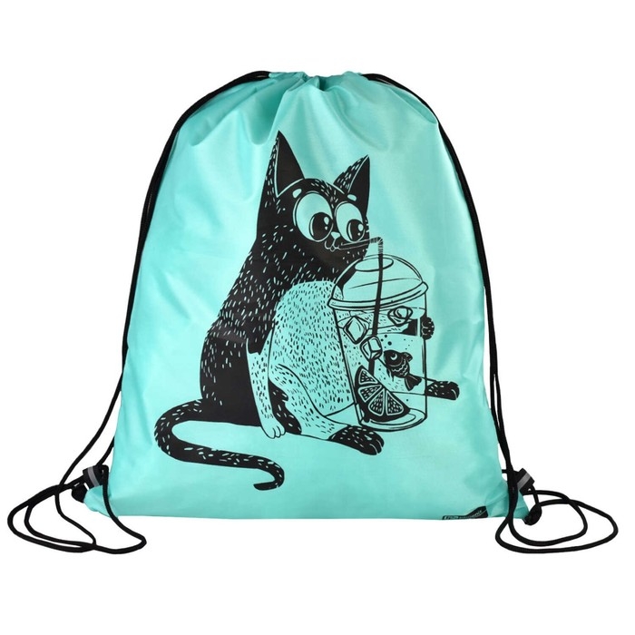 Мешок для сменной обуви. КОТ С ЛИМОНАДОМ. Размер: 34х42 см. Материал: полиэстер. Количество отделений - 1. Застёжка - шнурок. Отделка: шелкография. Особенности: светоотражающие элементы. Подклада: нет. Пол: для девочек. Индивидуальная упаковка: ПЭТ-пакет.