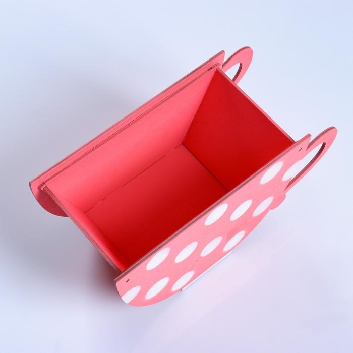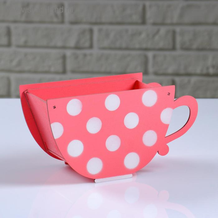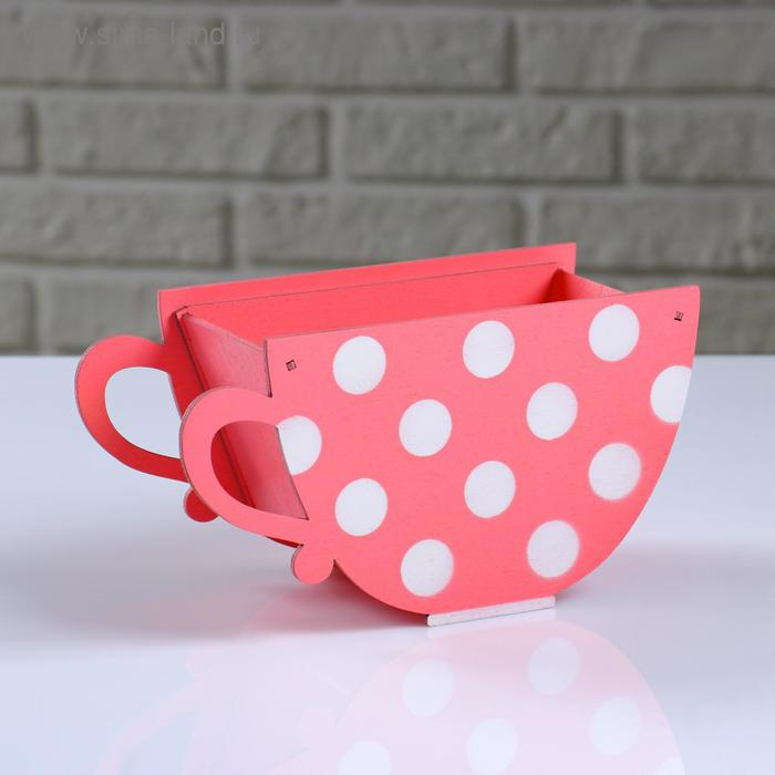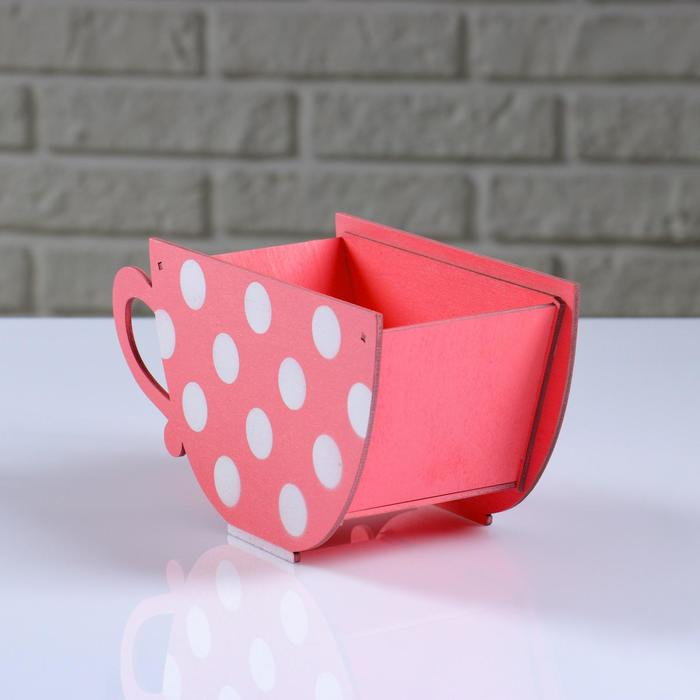 Кашпо деревянное "Чашка в горошек", коралловый, 20×9×11 см
