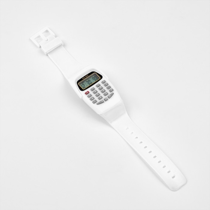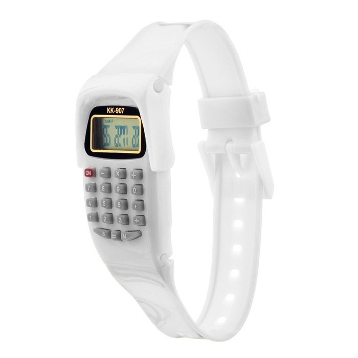 Часы наручные электронные детские, с калькулятором, ремешок силикон, l-21 см, белые