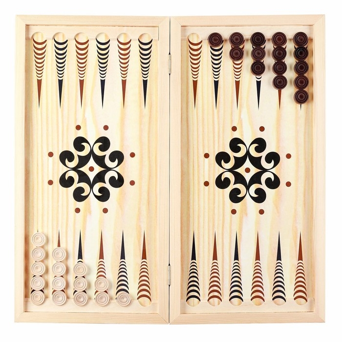Нарды деревянные большие, настольная игра "Узор", 40 х 40 см, с полем для игры в шашки