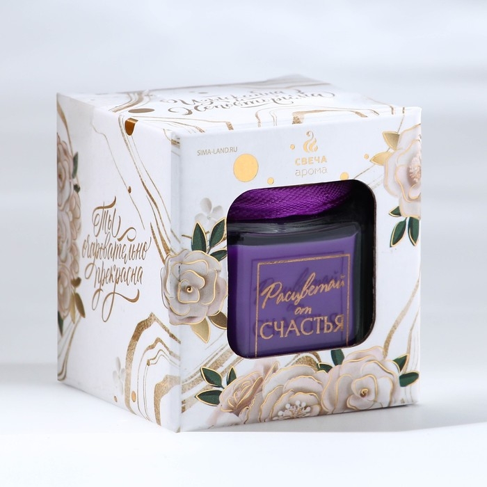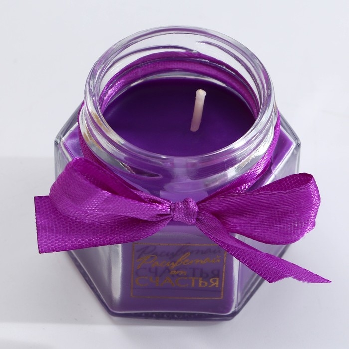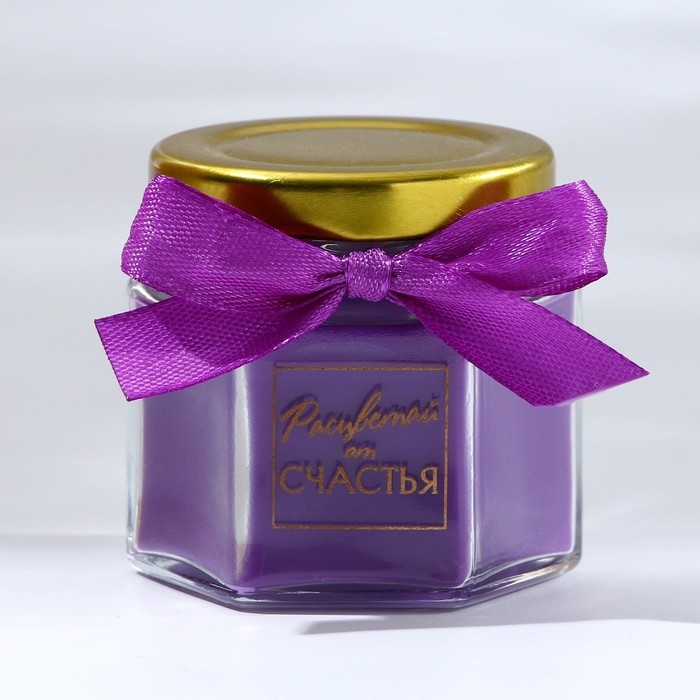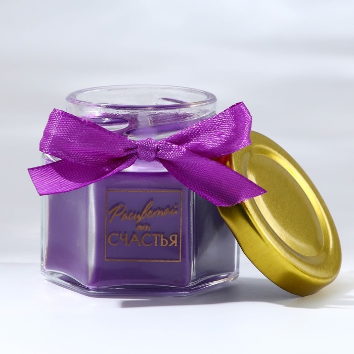 Свеча в банке "Расцветай от счастья", аромат ежевика, 6.5 х 5.5 х 5.5 см