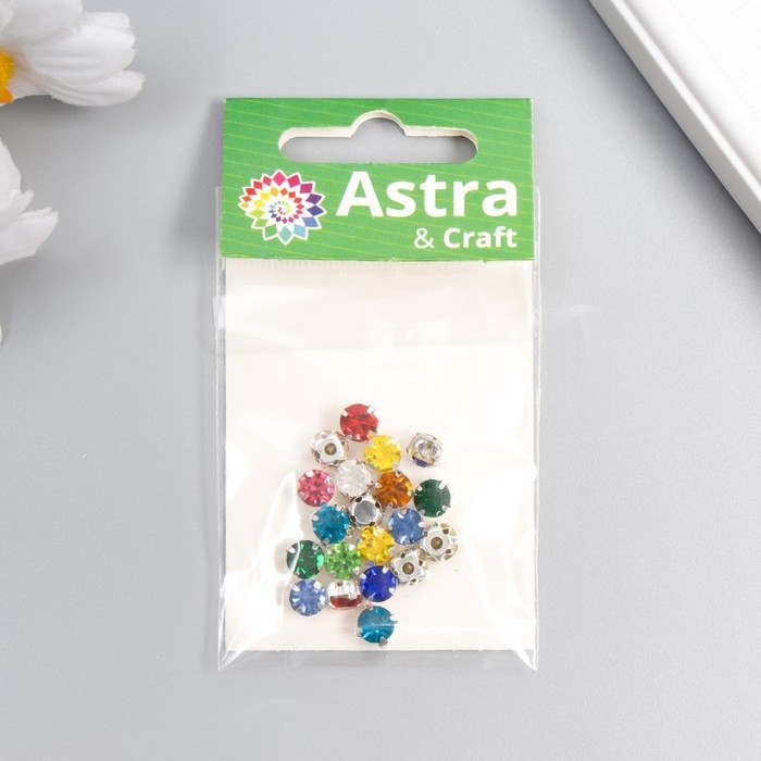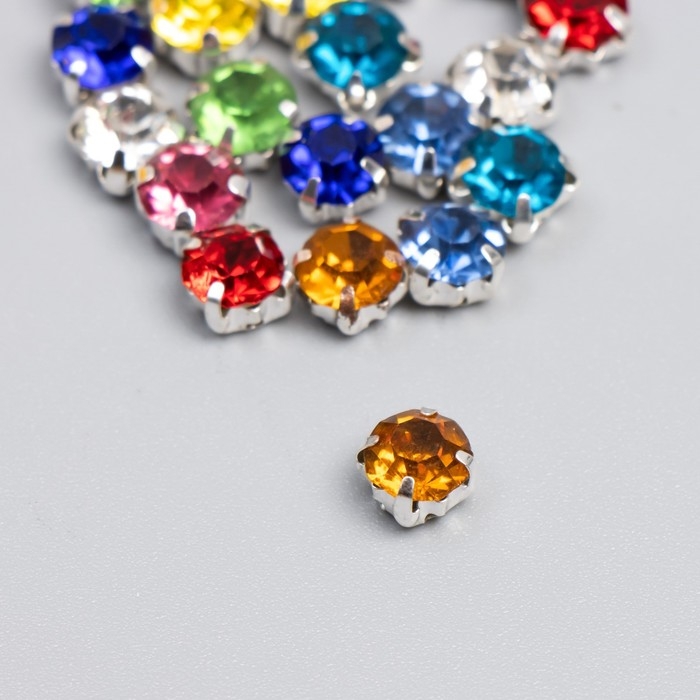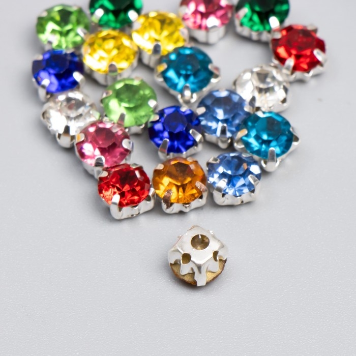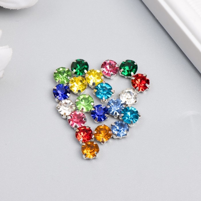 Стразы в цапах круглые 6 мм (20 шт/упак), микс, оправа серебро