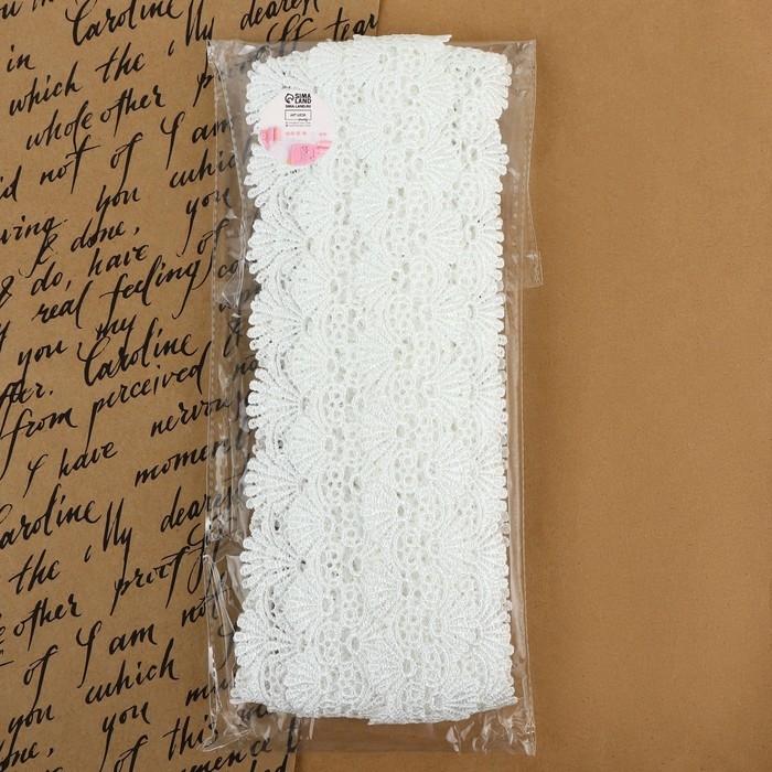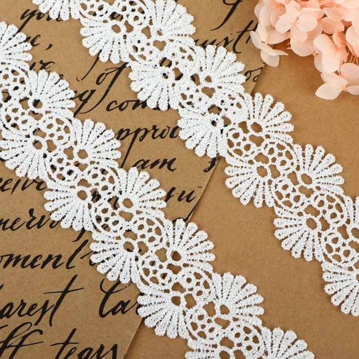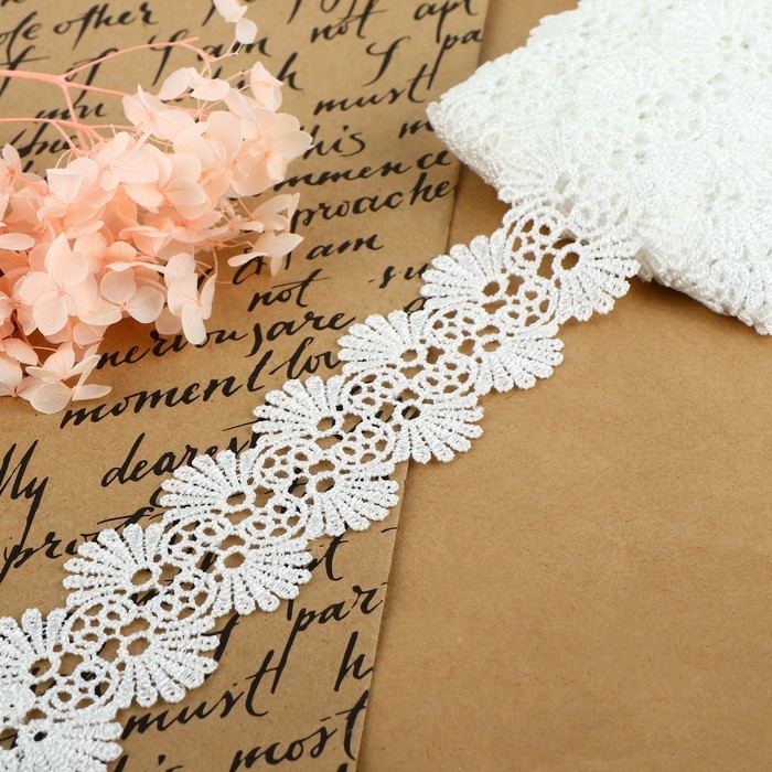 Кружево гипюровое, 40 мм × 9 ± 0,5 м, цвет белый