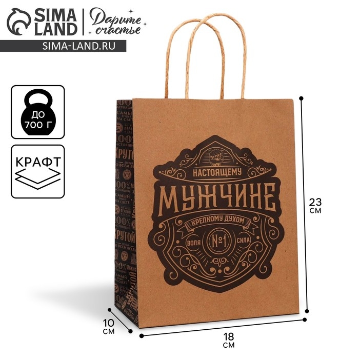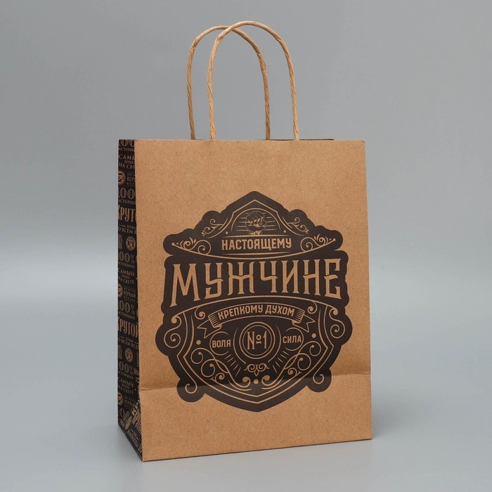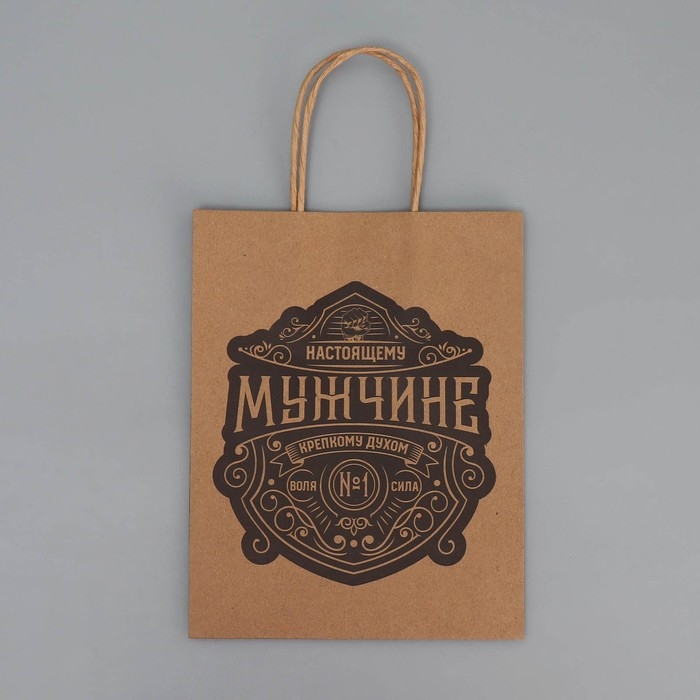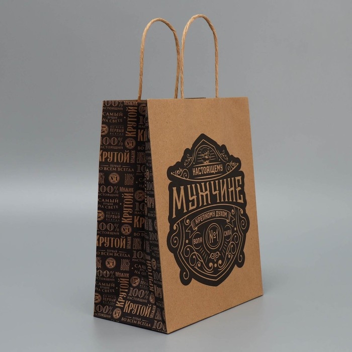 Пакет подарочный крафтовый, упаковка, «Настоящему мужчине», MS 18 х 23 х 10 см