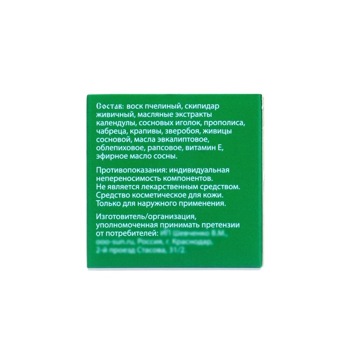 Зеленка монастырская. Активные компоненты, входящие в состав монастырской "Зеленки", оказывают антисептическое воздействие, не причиняя при этом вреда тканям. Мазь действует очень мягко, не грозит пересушиванием или ожогами кожи и не всасывается в чрезмерных количествах. Состав: воск пчелиный, живица сосновая, пихтовое масло, масло зверобойное, масло облепихи, масляные экстракты сосновых иголок, чабреца, крапивы, прополис.