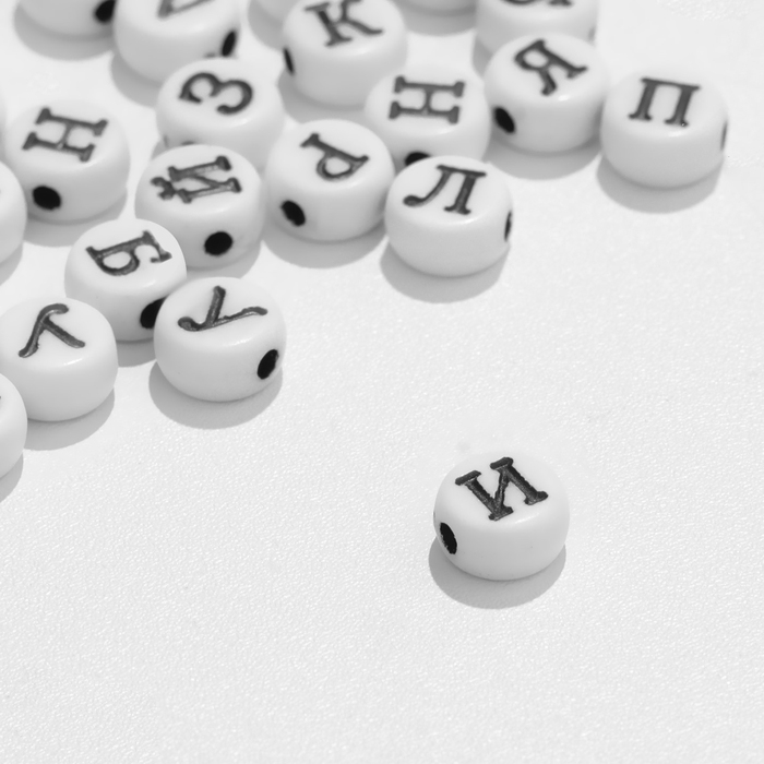 Бусина из акрила «Алфавит» МИКС, 7×4 мм, (набор 10 г), цвет чёрно-белый