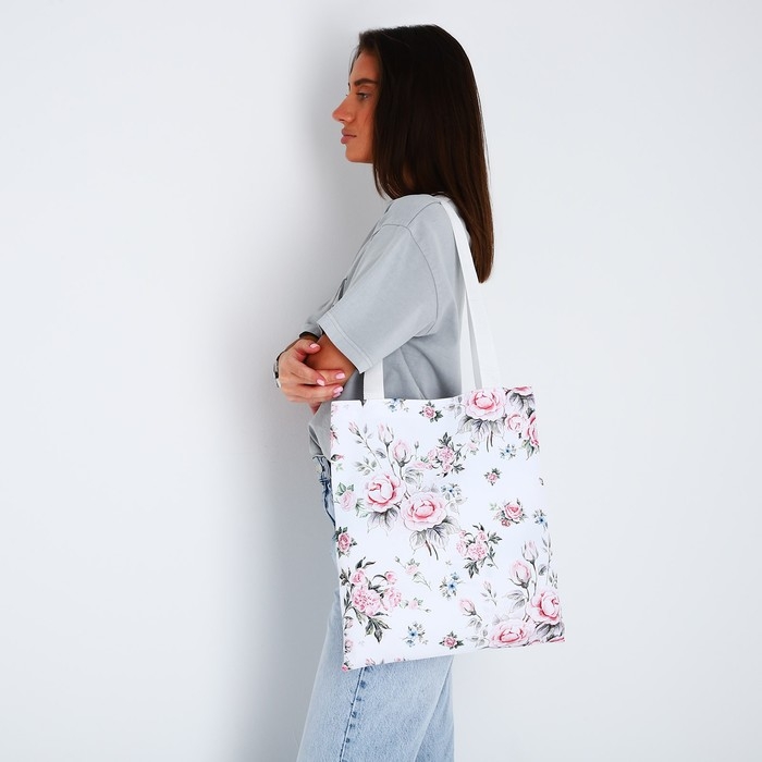 Сумка шопер «Розы», 35х0.5х40 см, отд без молнии, без подклада, белая