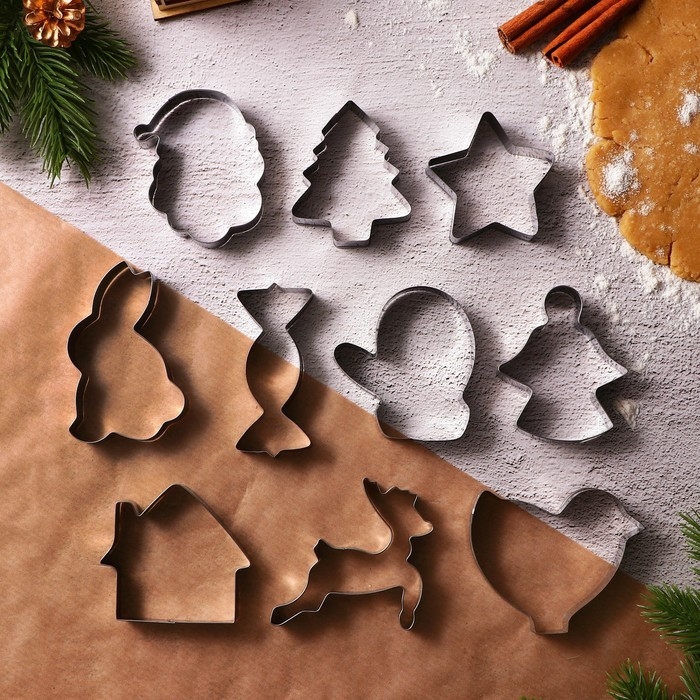 Подарочный набор формочек для печенья KONFINETTA «Зимние приключения»: 10 шт, нержавеющая сталь