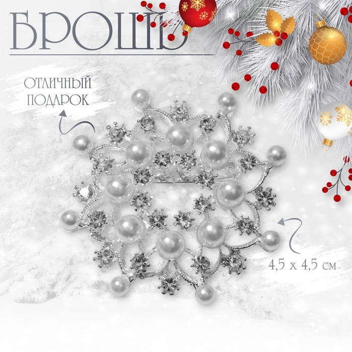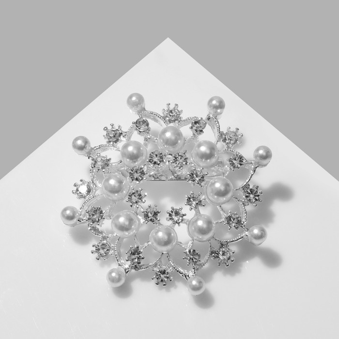 Брошь "Снежинка" жемчужная, цвет белый в серебре