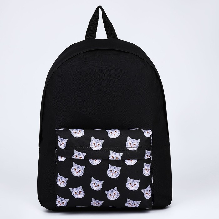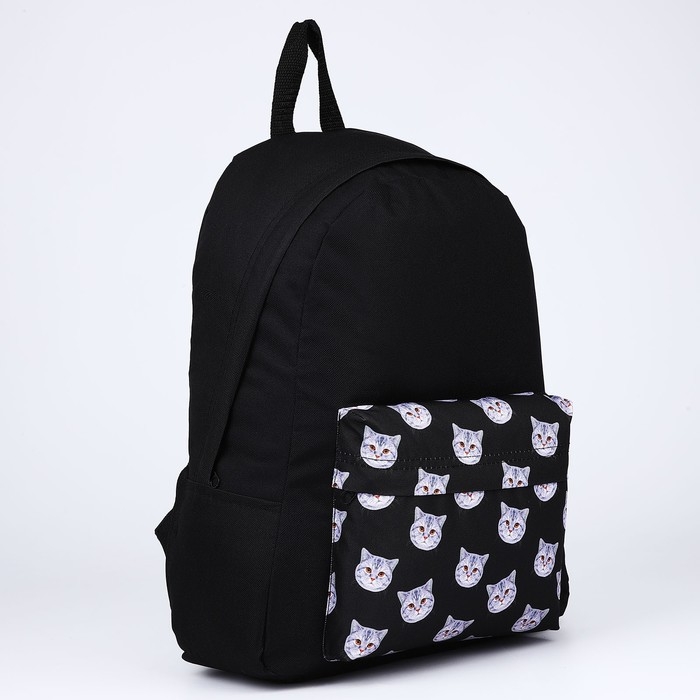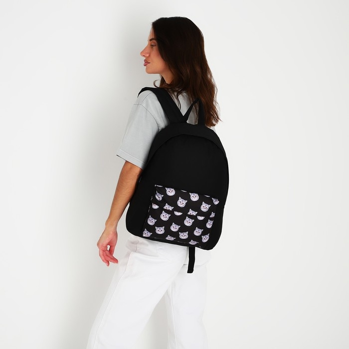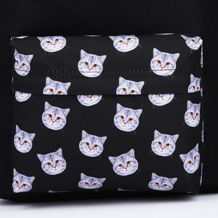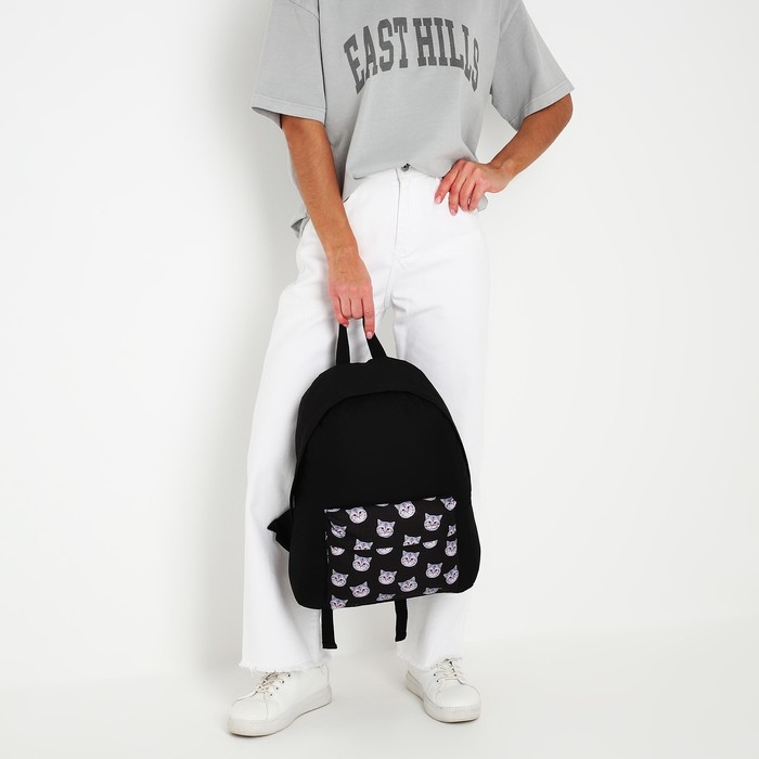 Рюкзак школьный текстильный «Коты», с карманом, цвет чёрный