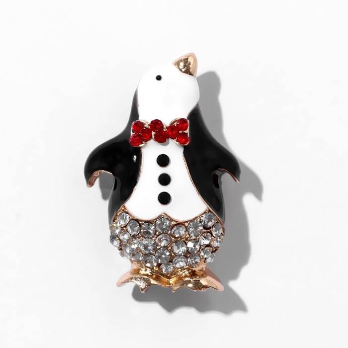 Брошь новогодняя "Мистер Пингвин", цветная в золоте
