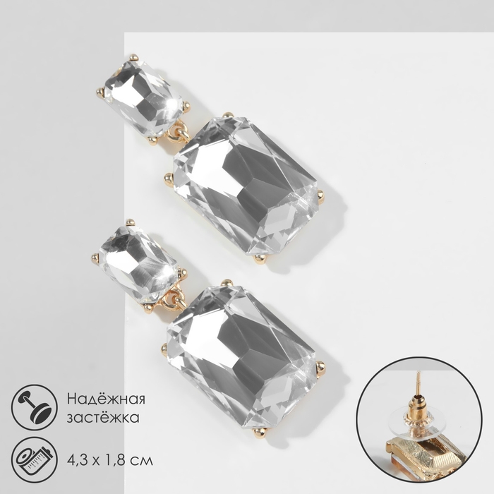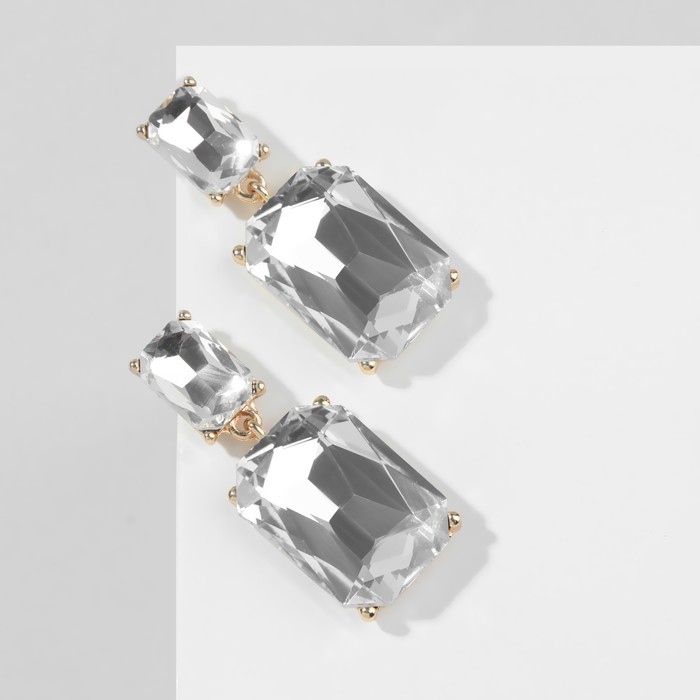 Серьги со стразами «Клео» классика, цвет белый в золоте