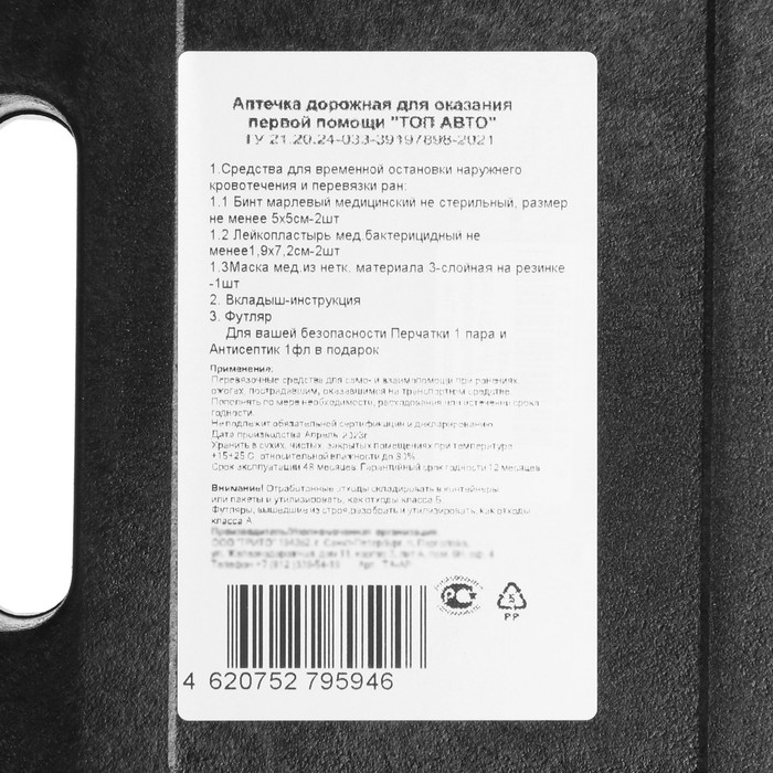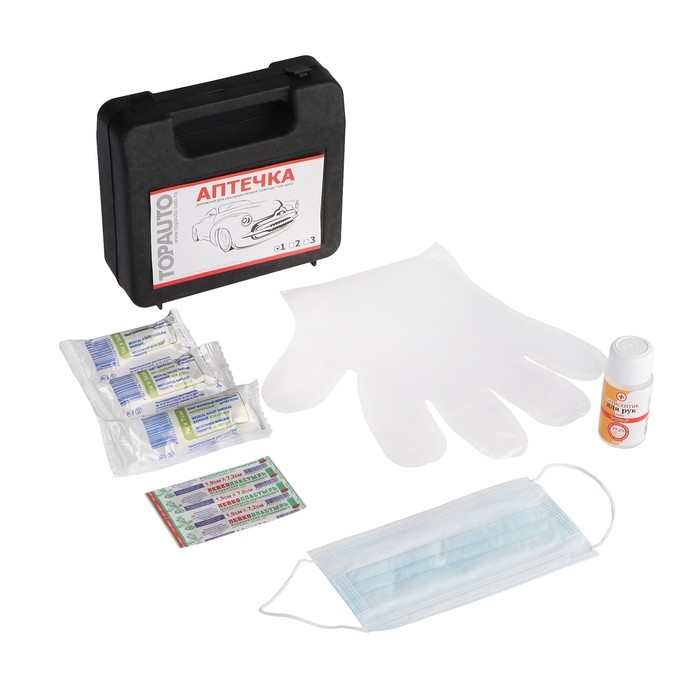 Аптечка дорожная для оказания первой помощи TOPAUTO по ТУ, 6 предметов, пластик