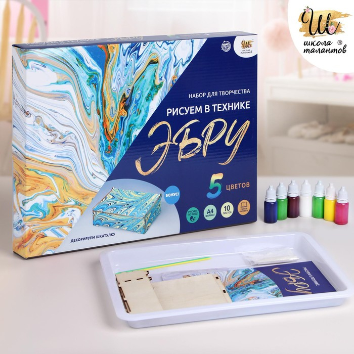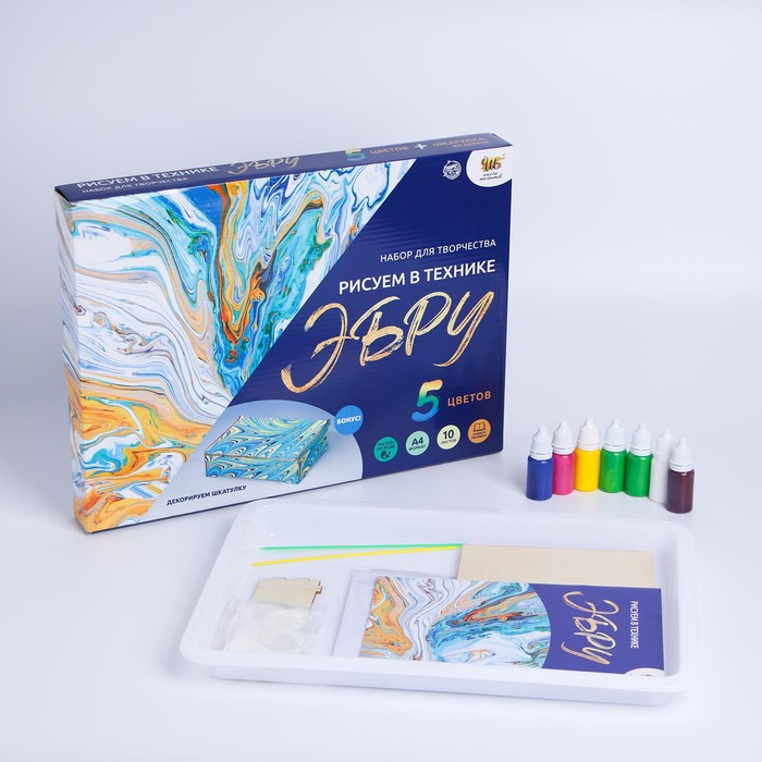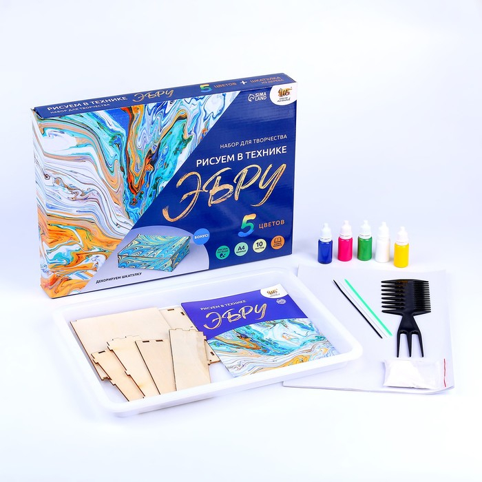 Набор для творчества «Рисуем в технике Эбру» , формат А4 + шкатулка из дерева