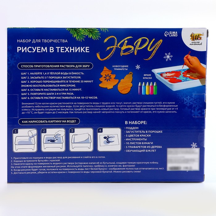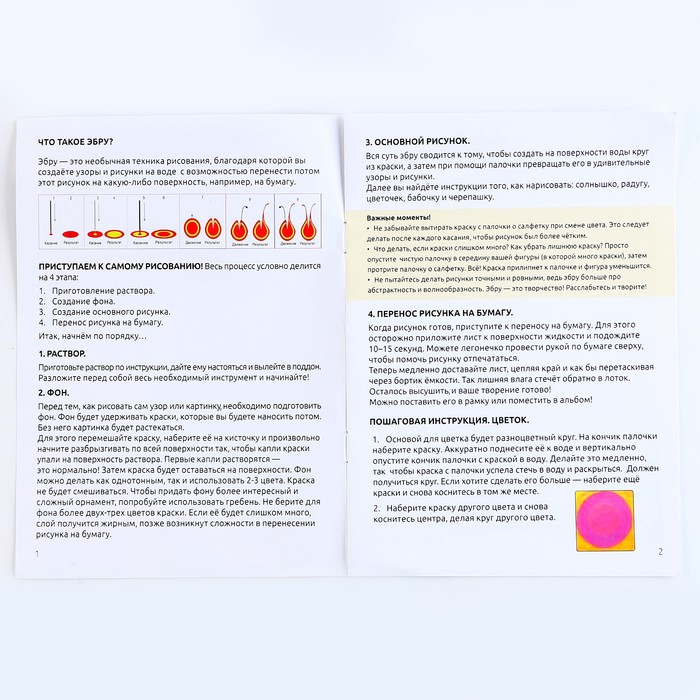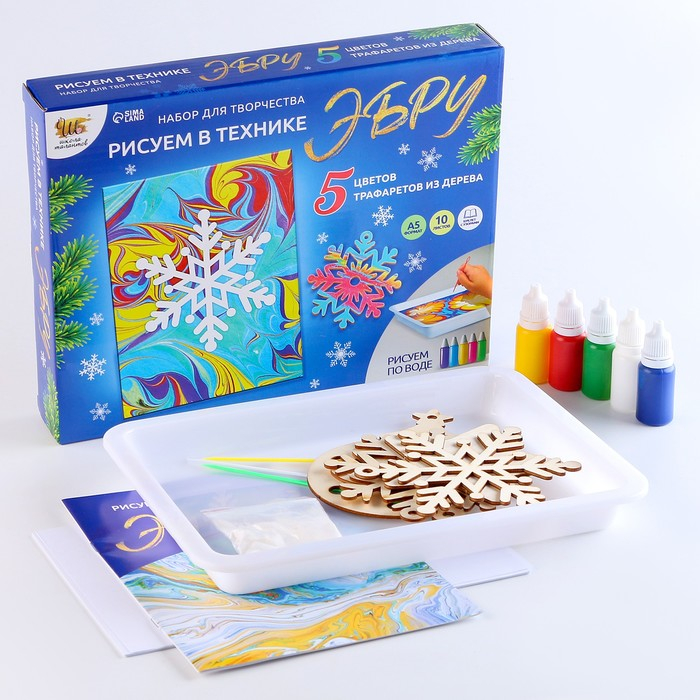 Набор для рисования эбру: краски 6 цв по 6 мл, 10 листов бумаги, загуститель 10 г, инструменты, поддон