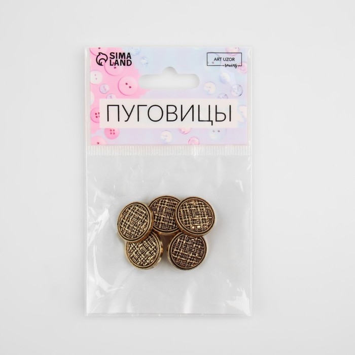 Набор металлических пуговиц на ножке, d = 18 мм, 5 шт, цвет чёрно-золотой