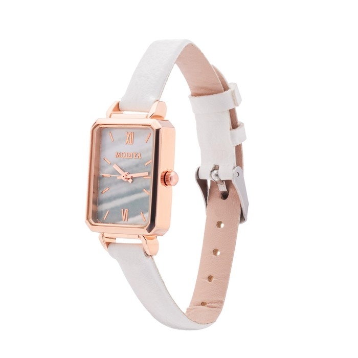 - Белоснежный ремешок из экокожи гармонично сочетается с любым нарядом, добавляя образу свежесть и лёгкость.