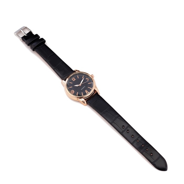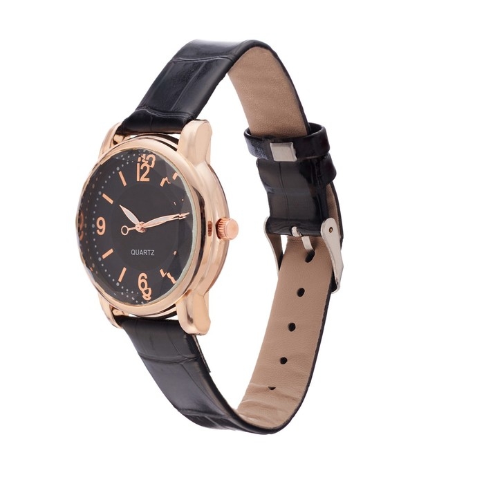 Часы наручные кварцевые женские, d-3.4 см, черный ремешок