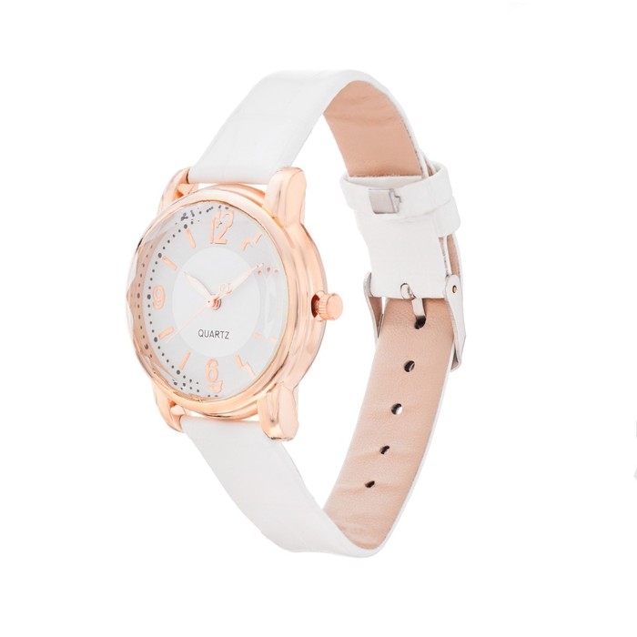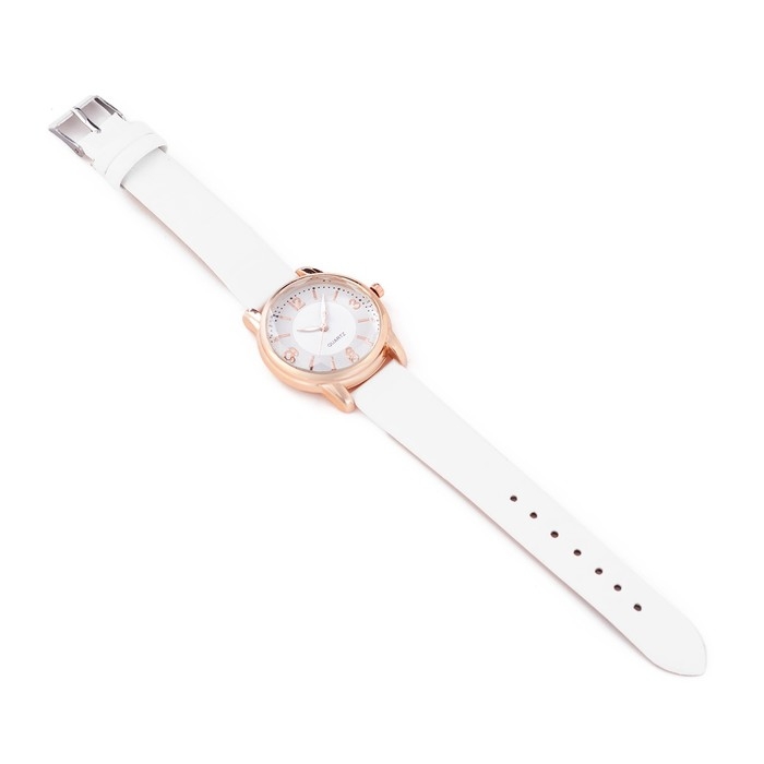 Часы наручные кварцевые женские, d-3.4 см, белый ремешок