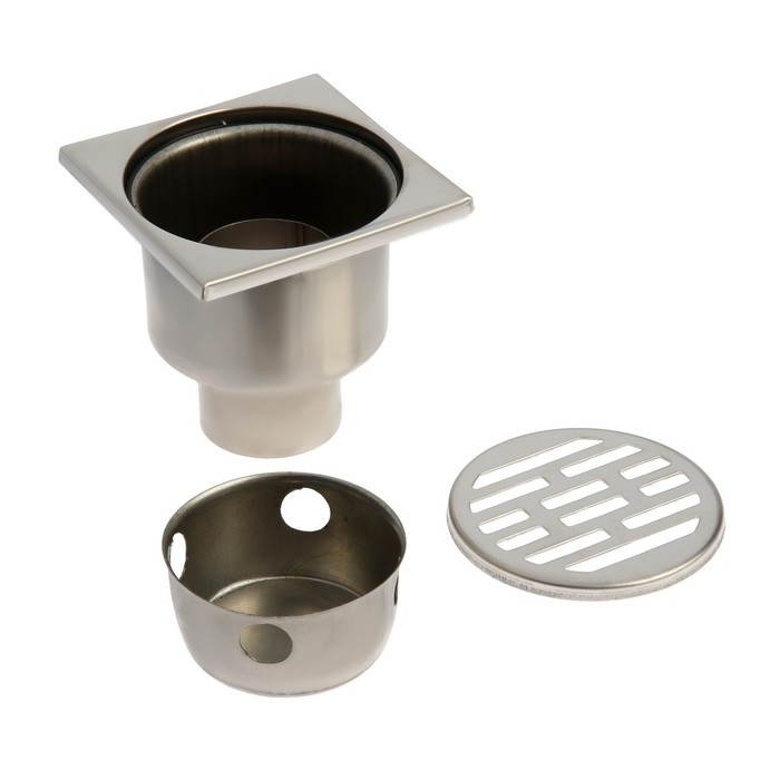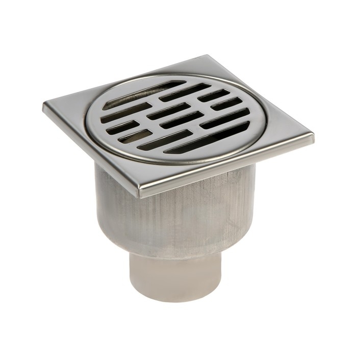 Трап ZEIN engr, 100х100 мм, вертикальный, d=50 мм, прямой выпуск, нержавеющая сталь