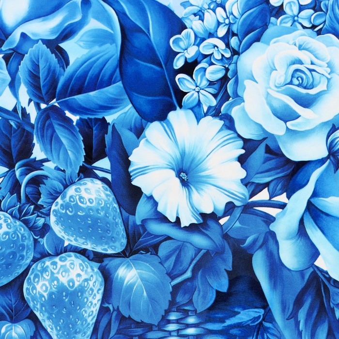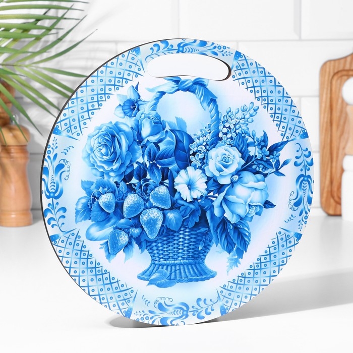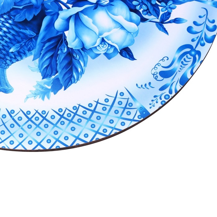 Доска разделочная и сервировочная круглая кухонная "Гжельская роспись", 25,5 см