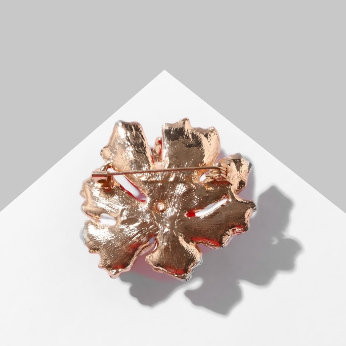 Брошь «Цветок» морской, цвет красно-белый в золоте