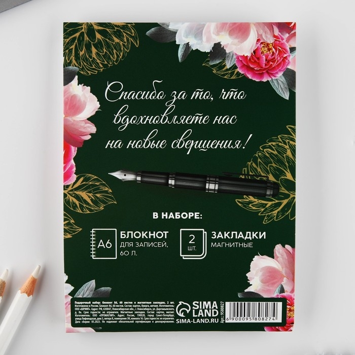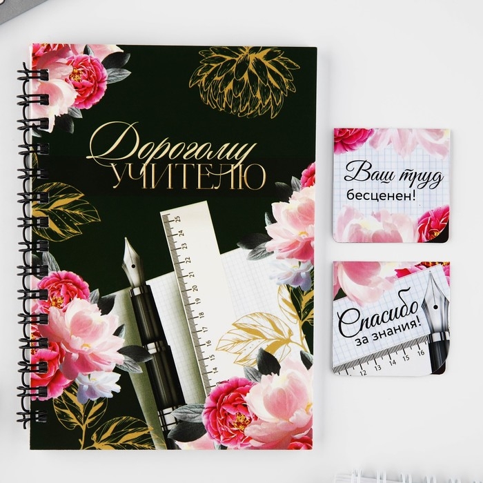 Подарочный набор: блокнот А6, 60 листов и магнитные закладки 2 шт «Дорогому учителю»