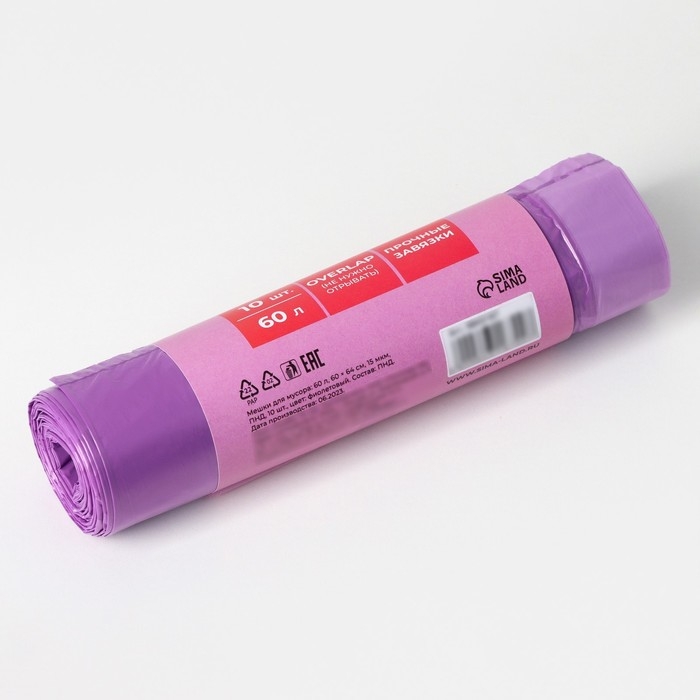 Мешки для мусора с завязками Доляна Overlap, 60 л, 60×64 см, 15 мкм, ПНД, 10 шт, цвет фиолетовый