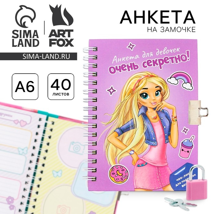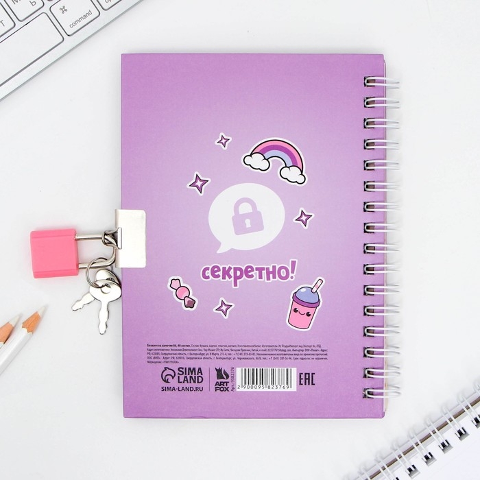 Анкета на замочке, в твердой обложке А6, 40 листов «Очень секретно!»