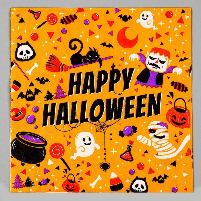 Салфетки легко украсят ваш стол и помогут создать весёлую атмосферу на празднике. Идеальный выбор для семейных и корпоративных мероприятий на тему Хэллоуина.