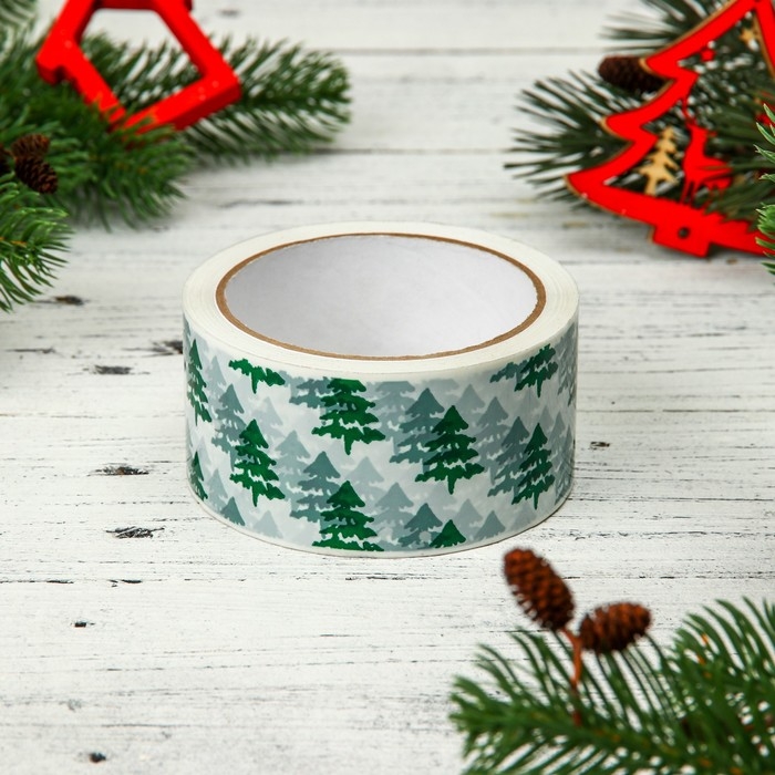 Скотч новогодний с логотипом "Елки" 48*45м 45мкм