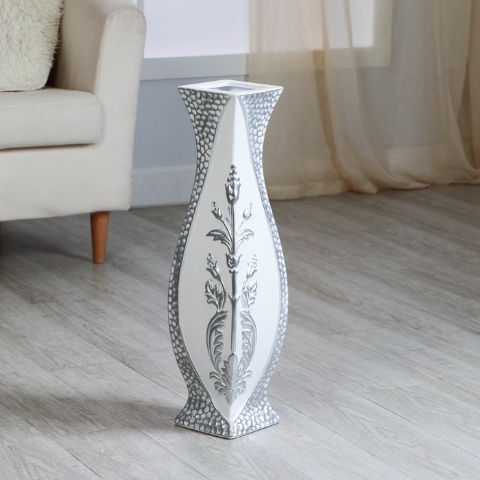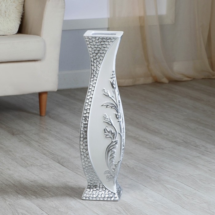 Ваза керамика напольная "Нолвен" цветы, d вн. 9 см 14х59 см, белый