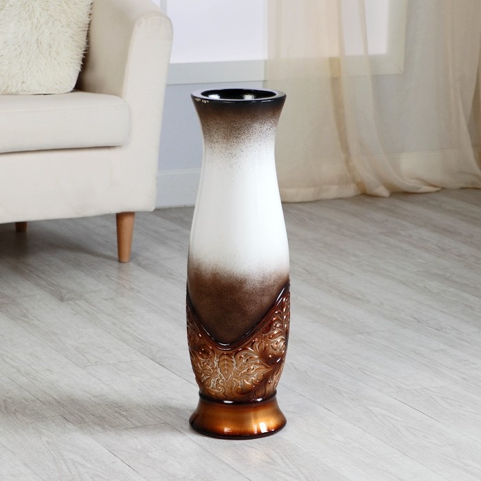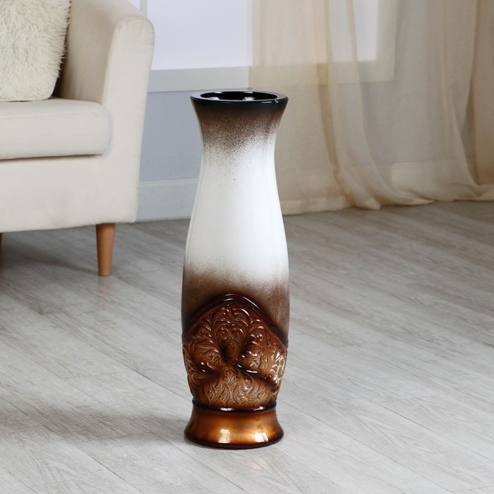 Ваза керамика напольная "Патаянс" 16х59 см, d вн.13 см, бело-коричневый