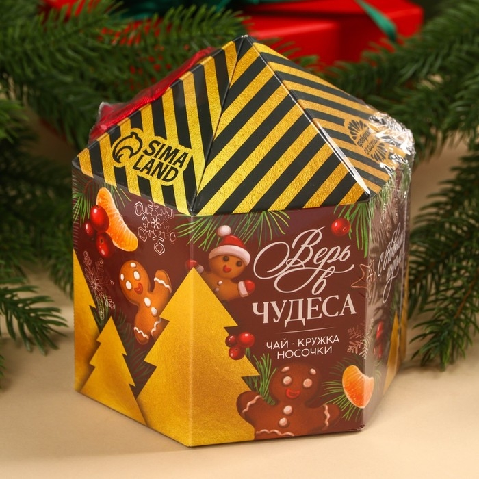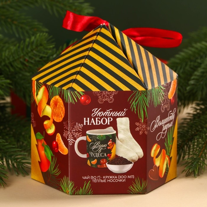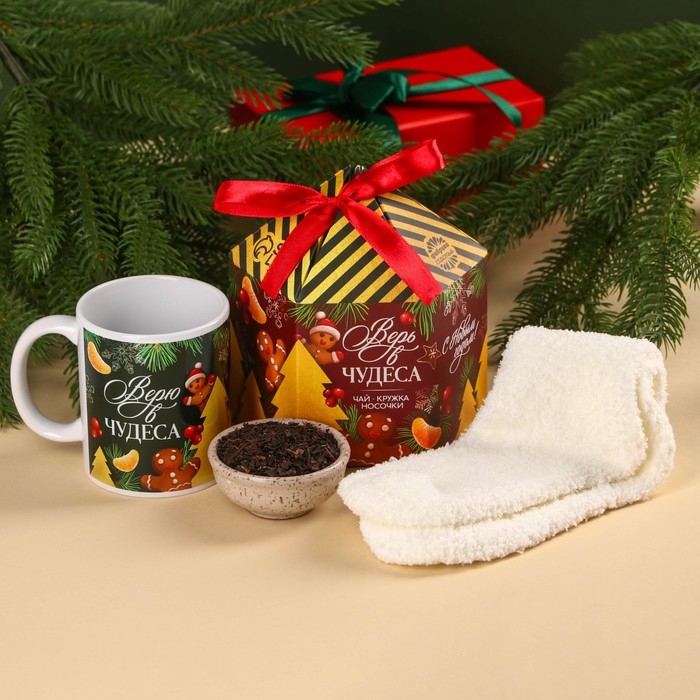 Подарочный набор «Верь в чудеса»: чай чёрный, вкус: глинтвейн, 50 г., кружка 300 мл., носки 36 - 39 размер