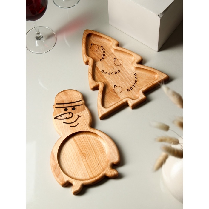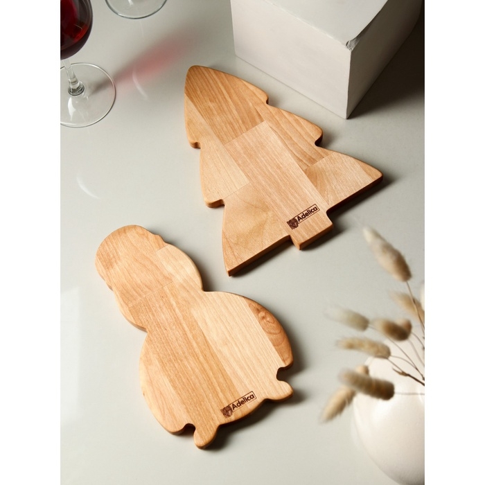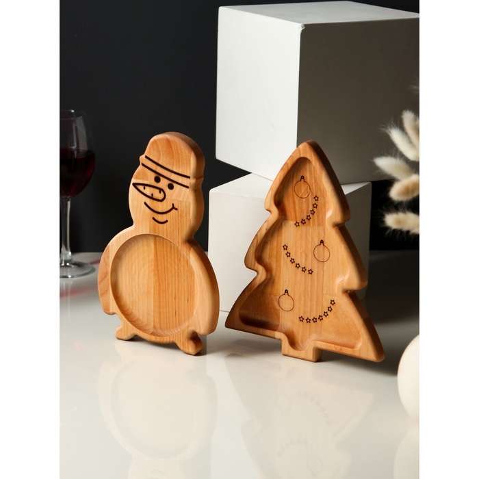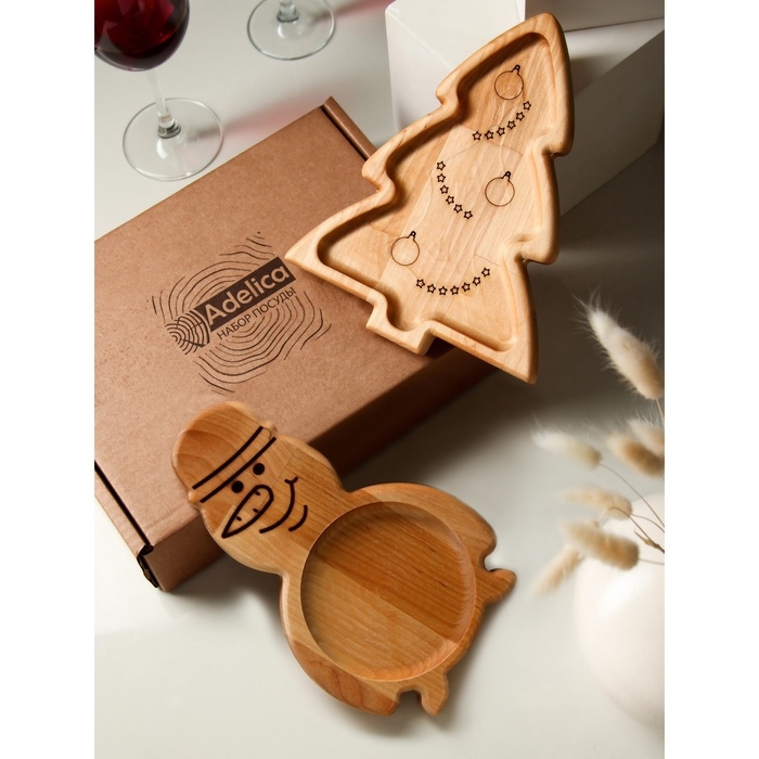 Подарочный набор посуды Adelica «С Новым годом», менажницы деревянные: снеговик 25×14 см, ёлка 25×20,5 см, магнит, в подарочной коробке