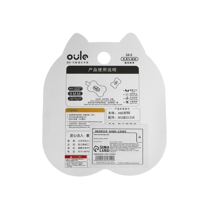 Нож канцелярский 9 мм "Кость", пластик, блистер, МИКС