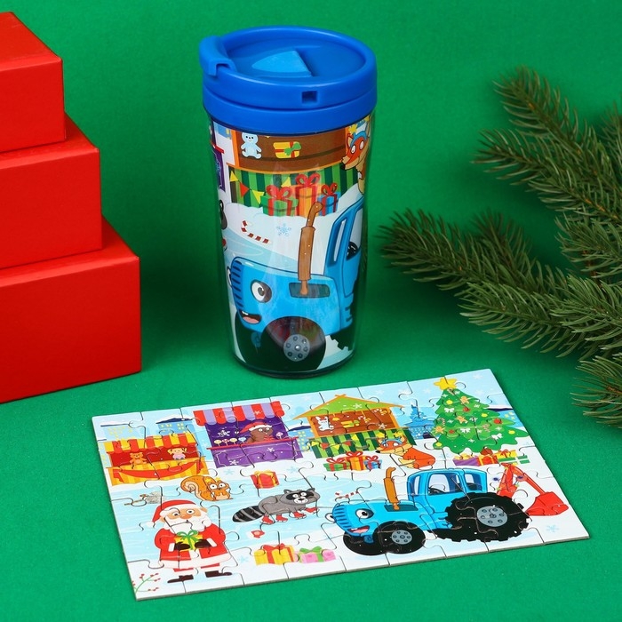 Термостакан с пазлом «Синий трактор: Новый год в городе», 54 элемента, 250 мл