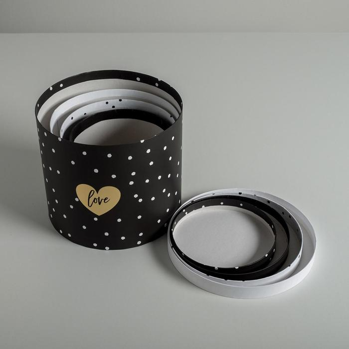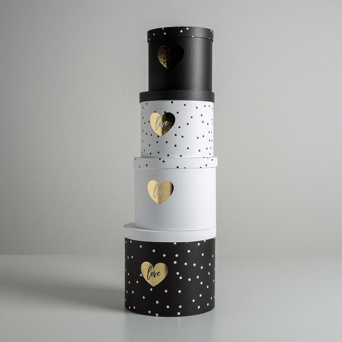 Набор шляпных коробок для цветов 4 в 1, упаковка подарочная, «Чёрно-белый», 14 х 13 см - 20 х 17,5 см