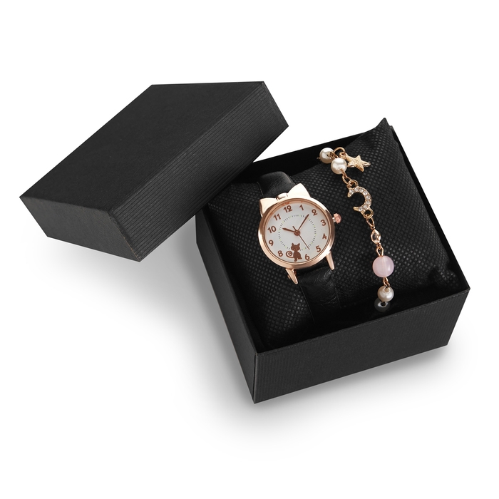 Женский подарочный набор "Кошечка" 2 в 1: наручные часы и браслет