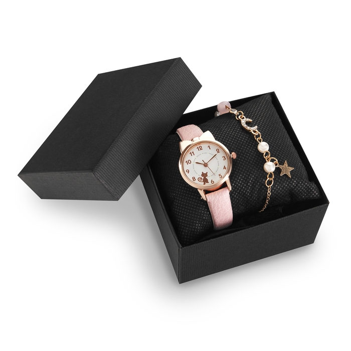 Женский подарочный набор "Кошечка" 2 в 1: наручные часы и браслет