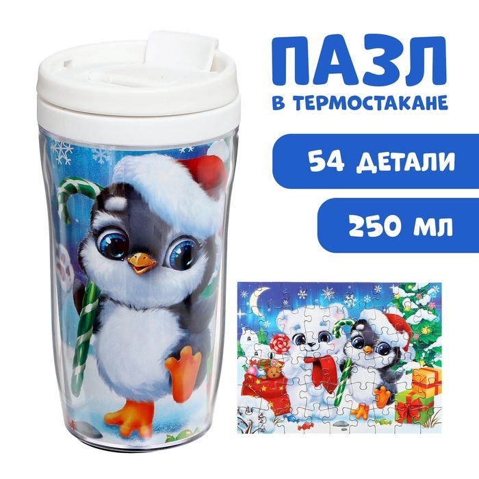 Пазл в термостакане «Пушистый Новый год», 54 элемента, 250 мл