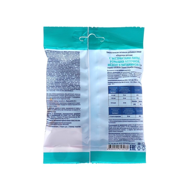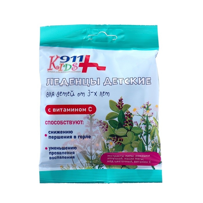 Леденцы "911" детские липа, ромашка, мед, витамин С, 50 г