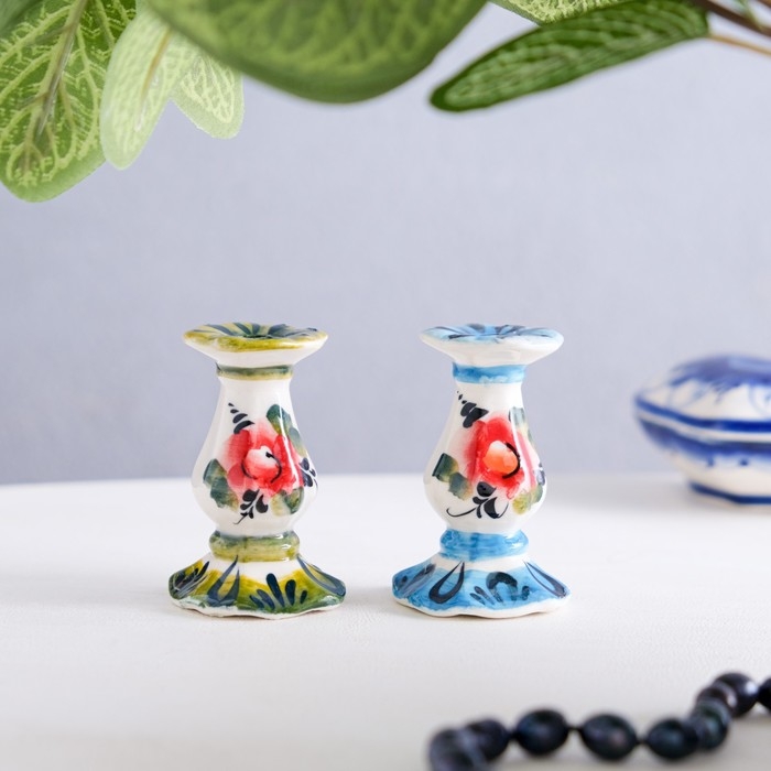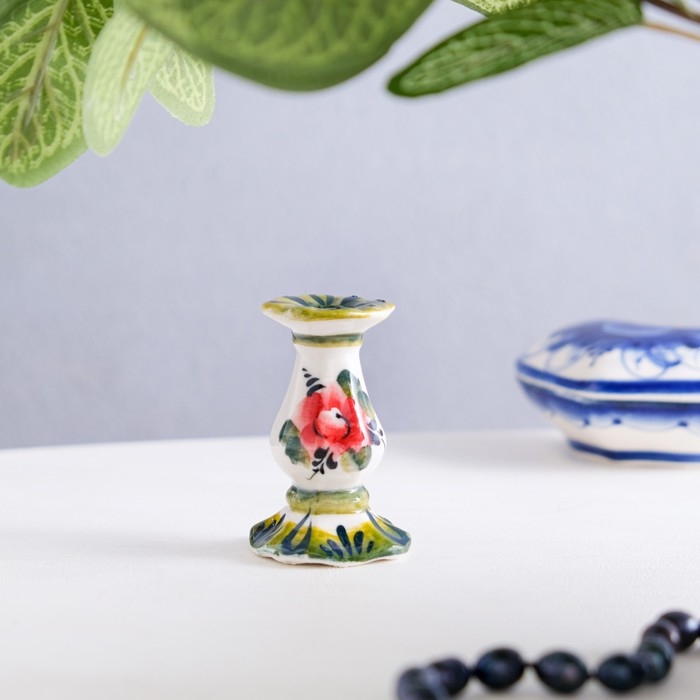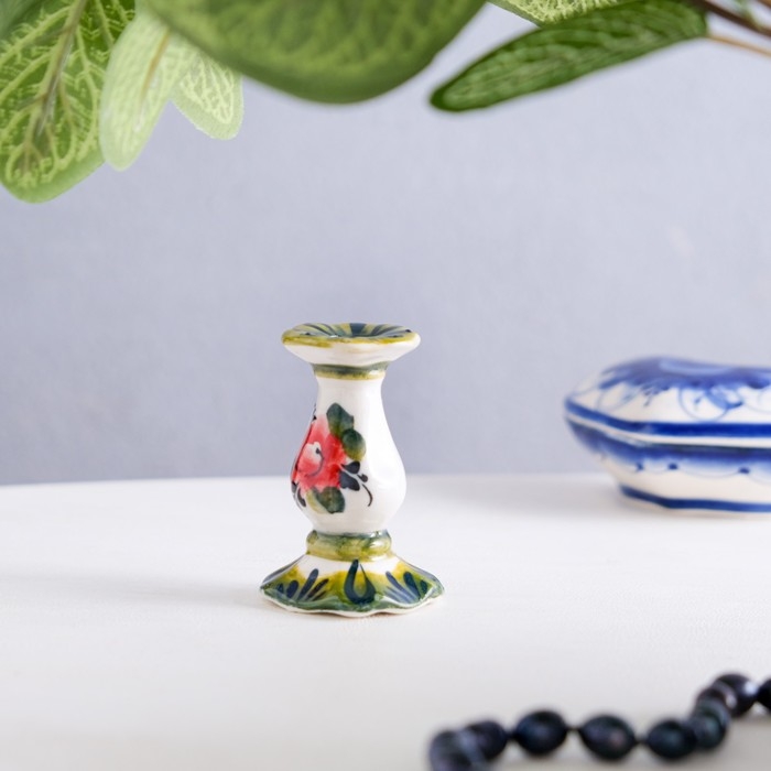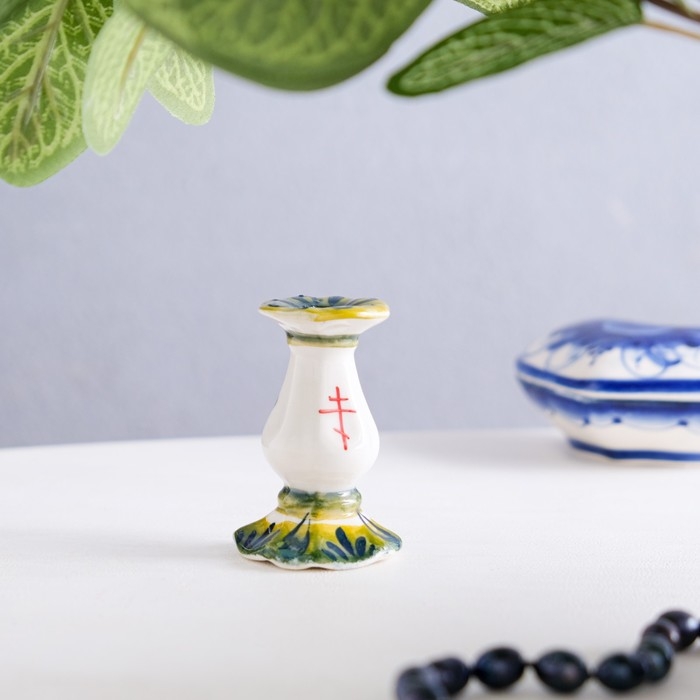 Подсвечник гжель «Церковный» , цветной, керамика,