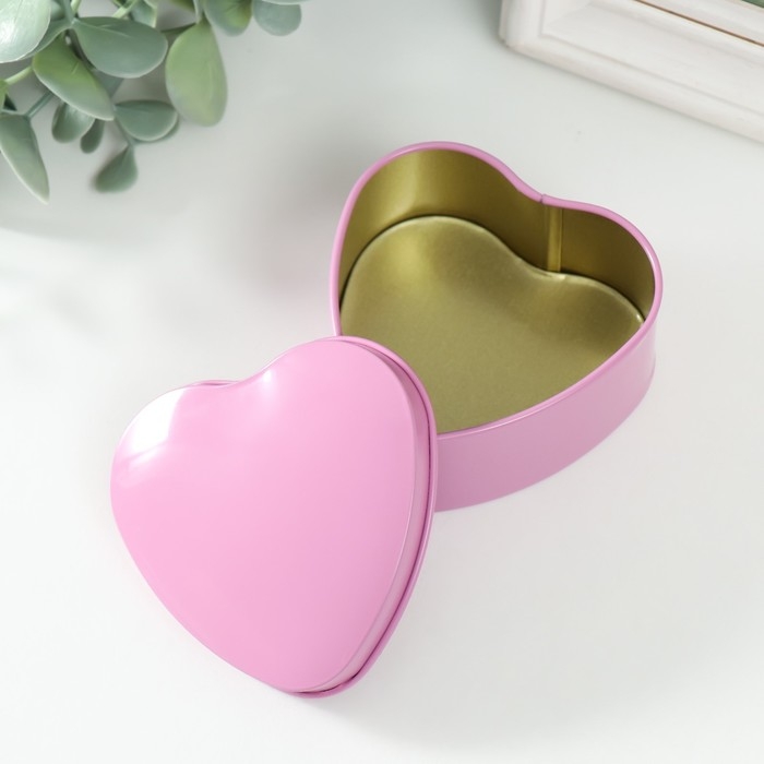 Шкатулка металл под свечу "Сердце. Глянец" розовый 7х7х3,5 см