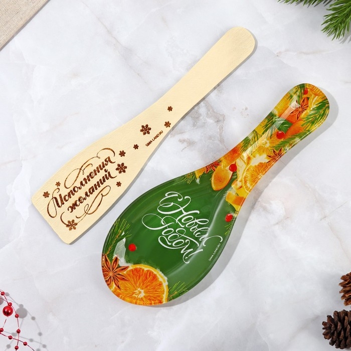 Подарочный набор новогодний «С Новым годом!»: подставка под ложку, лопатка